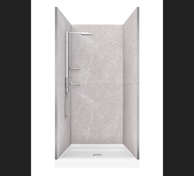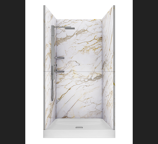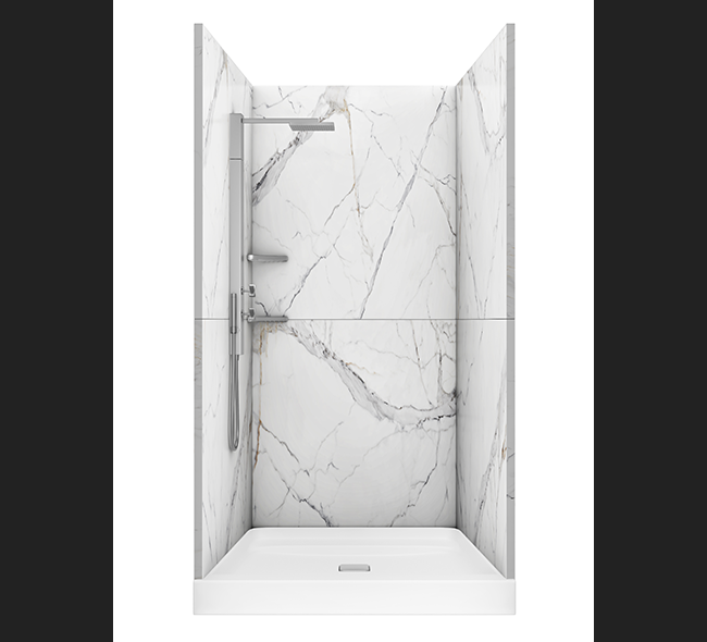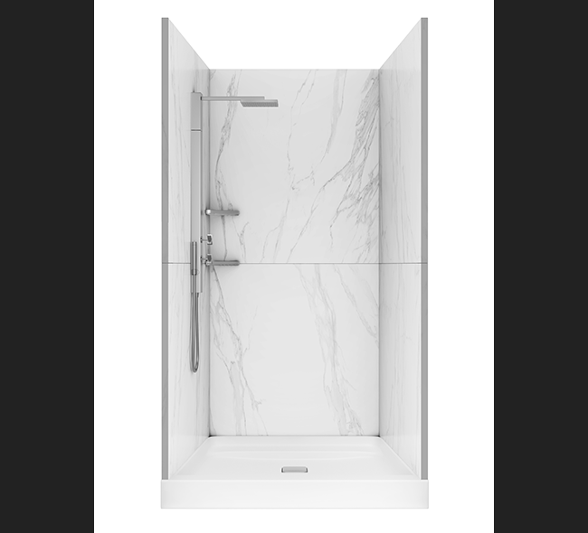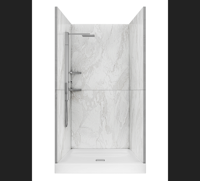 - Pre-cut, modular panels are ideal for any standard-sized, three-wall, alcove shower up to 60”W x 36”D